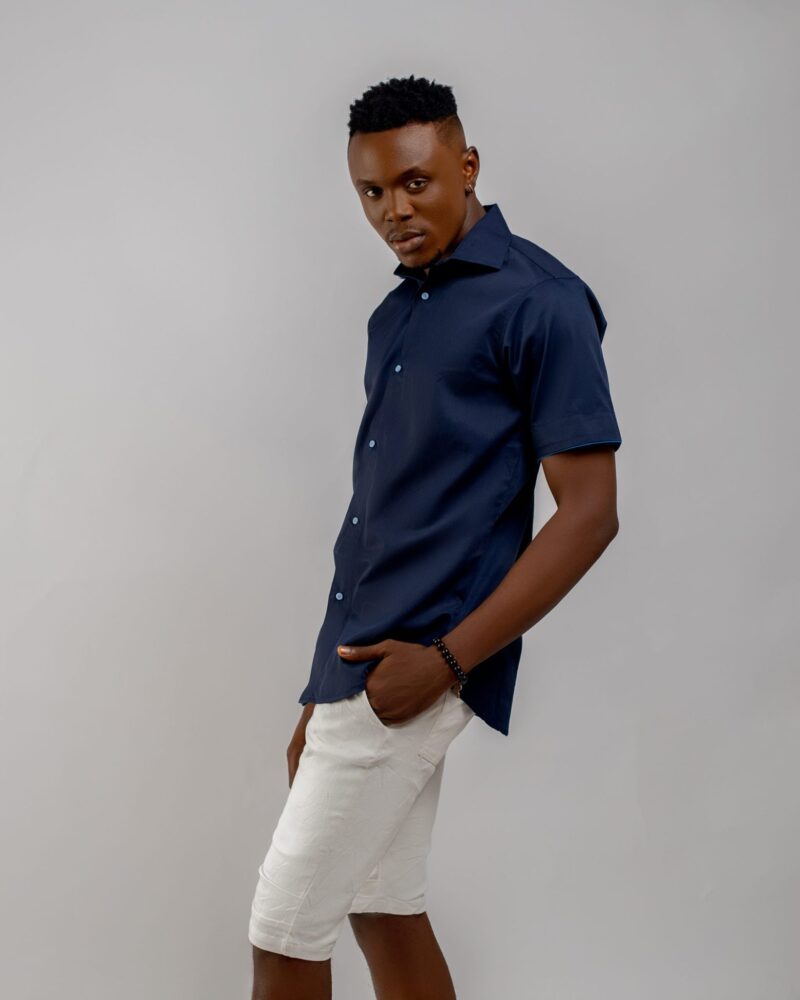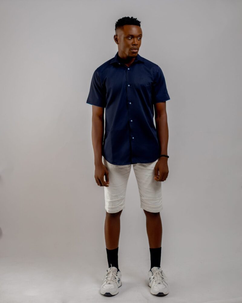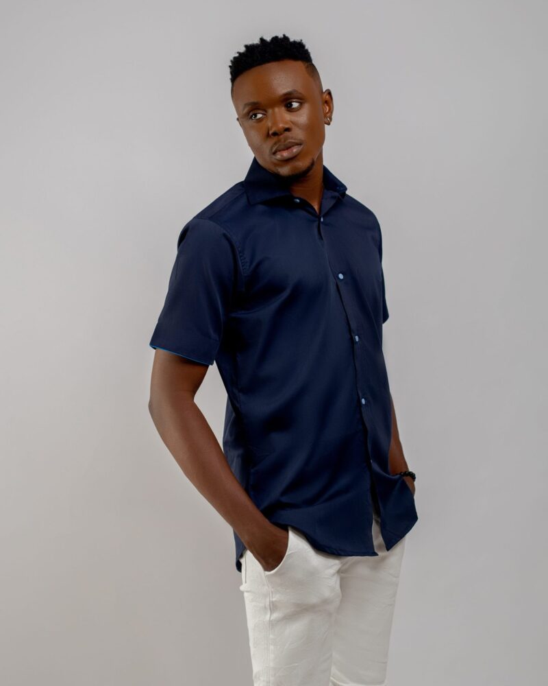 Sleek and understated, this navy blue short-sleeve shirt features fine piping details for a polished edge. Crafted from soft fabric, it’s designed for comfort while adding a touch of refined style to your casual collection.